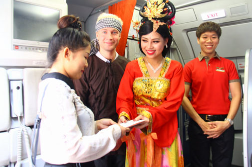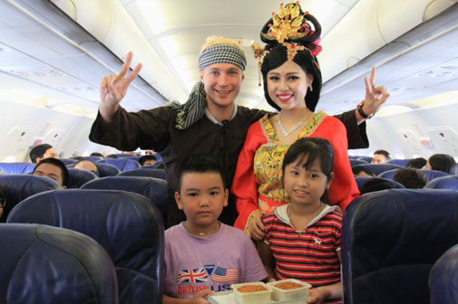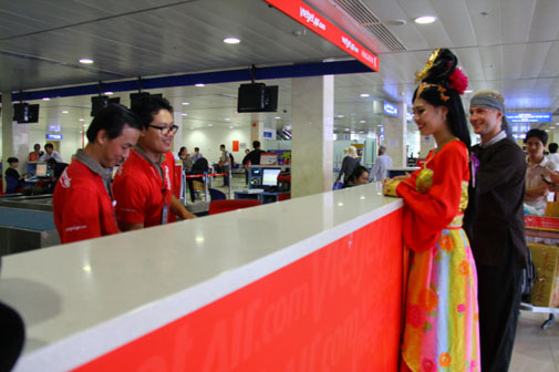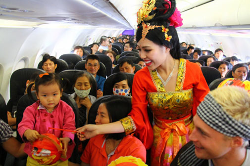 (Vietjet, 호치민시, 2014/09/08) - 중추절 축하, Vietjet의 항공편 위에 모든 어린이 승객은 아름다운 초롱 과 많은 매력적인 선물으로 꾸오이 아저씨, 항 언니의 환영을 받았습니다. 화려하고 재미있는 모양이 많은 초롱 10,000 개 이상 과 흥미로운 교류 프로그램은 어린이에게 선물해주었습니다.