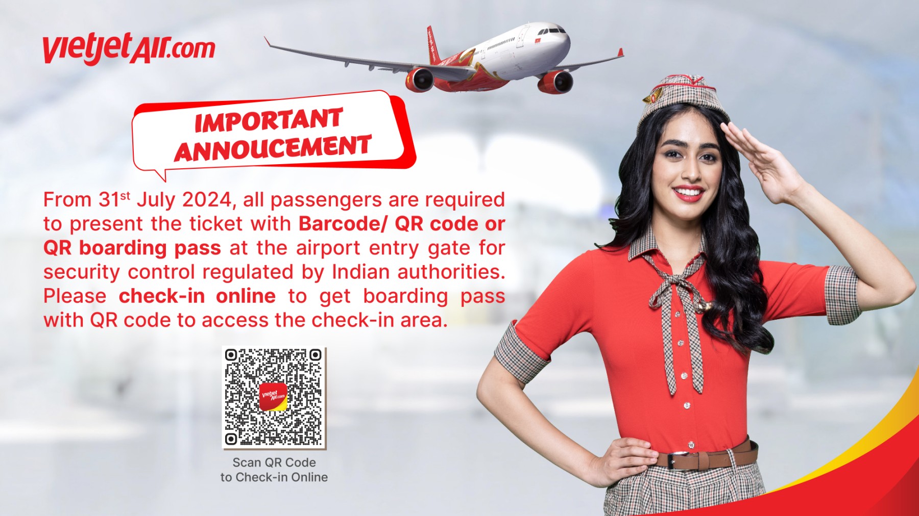 For your convenient, passengers are requested to prepare flight ticket with barcode/QR code by checking - in online in advance to get a boarding pass with QR code here https://www.vietjetair.com/en/checkin.