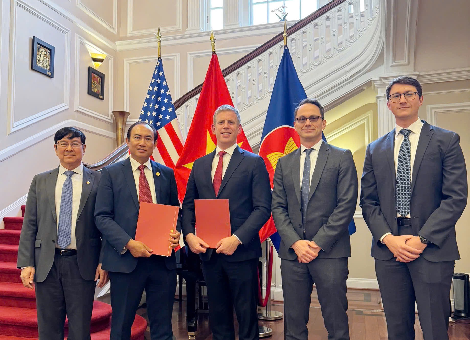 Photo 4, 5, 6: The signing ceremony take place in the presence of Vietnam’s Deputy Prime Minister Ho Duc Phoc (middle) and other senior Vietnamese government officials, as part of an official mission aimed at strengthening U.S.–Vietnam economic and trade relations.