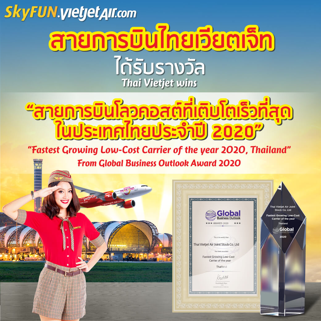 「グローバル・ビジネス・アウトルック・アワード 2020」は、イノベーション、創造性、ビジネス 上の優位性など、過去 1 年間に優れた業績を上げた組織や企業を表彰するもので、今年は、タイ・ ベトジェットが受賞者の一人に選ばれました。Global Business Outlook 誌は、航空、金融、銀行 に関するグローバルビジネスニュースに特化した権威あるビジネス誌です。