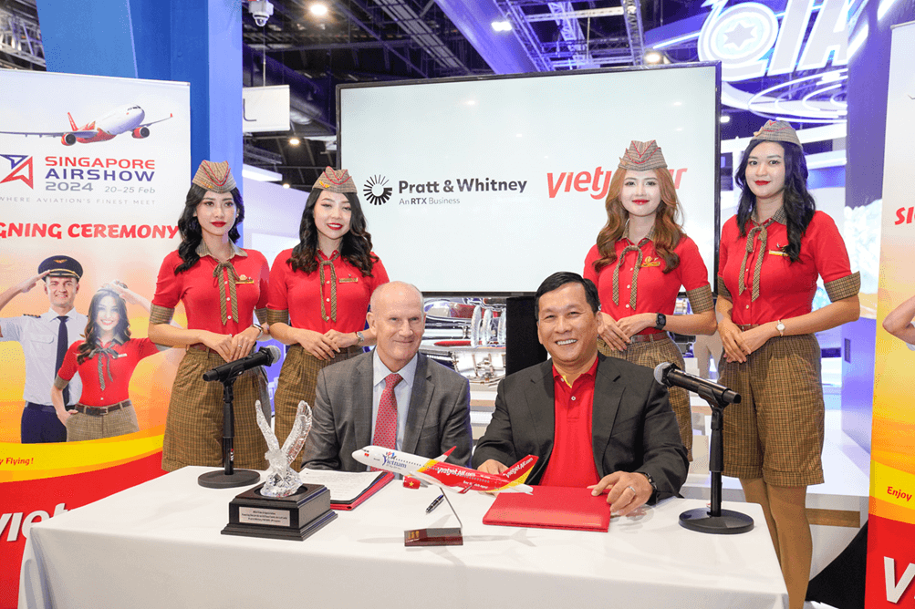 ベトジェットは RTX 社のプラット&ホイットニーから、追加で 19 機の GTF エンジンを搭載した A321neoを導入する契約を発表しました。この契約には、エンジンメンテナンスに関する EngineWise®の包括的サービスも含まれています。シンガポール・エアショーの開催期間に行われた調印式は、ベトジェットとプラット&ホイットニーとの間の継続的なパートナーシップをより強固なものとしました。