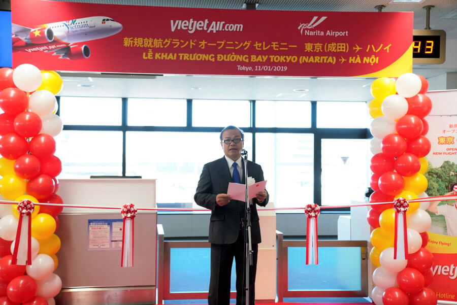 就航記念イベント内で、べトジェットエア副社長 ドゥ・シュアン・クゥアンは、「大阪~ハノイ線、大阪~ホーチミン線に続き、日本とベトナムを繋ぐ3番目の路線を就航させることができ、大変嬉しいです。この度の新規路線を通じて、東京および関東エリアにお住まいの方々が、首都のハノイを含め世界的に有名なベトナムの観光地であるサパ、ハロン湾、チャンアン、そしてソンドン洞等へより気軽に行けるようになり、旅先の選択肢が増えると思っております。加えて、日本とベトナムの旅行客を含め、世界中の旅行客がベトジェットを利用し、他のASEAN国や東北アジアに気軽に飛び回る日が来ることを願っております。様々な価格帯の航空券や、べトジェットならではの機内エンタテイメントとともに、優れたサービスや新しい機体、フレンドリーなCA、温かい機内食を通じ、快適な空の旅をお届けしていきます。」とコメントしました。