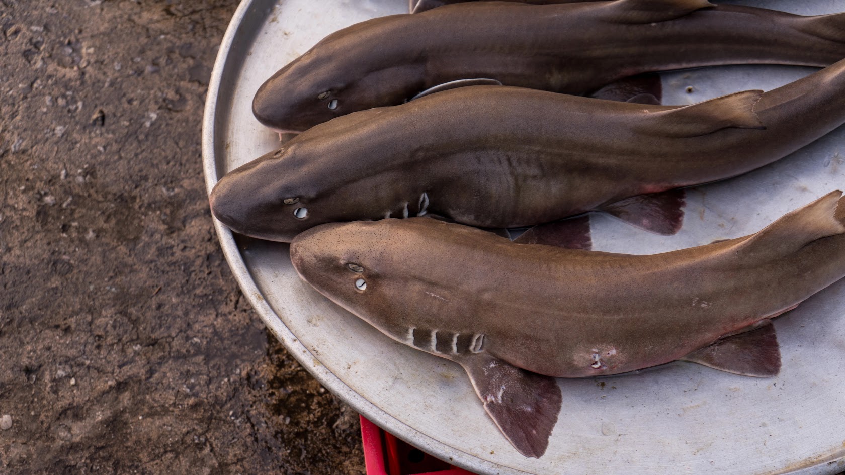 신선한 상어는 시장에서 판매됩니다. 이런 종류의 물고기는 밀크샤크(milk shark)라는 또 다른 이름을 가지고 있지만, 우리가 흔히 알고 있는 상어와는 전혀 다릅니다.