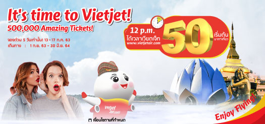 4. จำนวนบัตรโดยสารโปรโมชั่น 500,000 ที่นั่ง ขึ้นอยู่กับการจัดสรรและอาจไม่มีให้บริการในบางเที่ยวบินและบางวัน