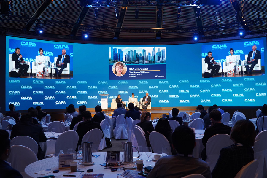 ประธานบริษัทและประธานเจ้าหน้าที่บริหาร เวียตเจ็ท กล่าวคำปราศรัยในงาน CAPA Asia Aviation Summit ณ ประเทศสิงคโปร์