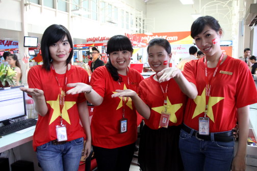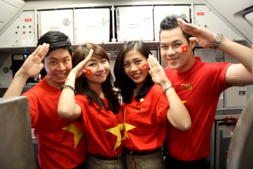 ในเทกาลทั่วประเทศชื่นชมยินดีฉลองวันอิสระ VieJetAir ได้ "แช่" ในความสุขทั่วไป การทักทายต้อนรับผู้โดยสาร พนักงานมีเครื่องแต่งกาย ธงสีแดงดาวสีเหลือง แสดงความรักชาติและแนะนำเพื่อนต่างประเทศ ภาพที่สวยงามของประเทศเวียดนามที่ทันสมัย และบูรณาการต่างประเทศ