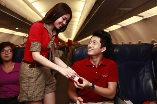 กิจกรรมที่น่าตื่นเต้นนี้ถือเป็นของขวัญจาก VietJetAir มอบให้แก่ผู้โดยสารในวันวาเลนไทน์ นอกจากนี้เพื่อเป็นการฉลองเทศกาลแห่งความรักนี้ VietJetAir ได้มอบโอกาสในการบิน 35,000 ที่นั่ง ในราคาเพียง 9,000 VND เท่านั้น โปรโมชั่นนี้จะเริ่มต้นตั้งแต่วันที่ 13-15 กุมภาพันธ์ 2557 สามารถใช้ได้สำหรับทุกเที่ยวบิน(ในประเทศและต่างประเทศ) บัตรโดยสารนี้ใช้ได้สำหรับการเดินทางในวันที่ 13 กุมภาพันธ์ ถึง 20 พฤษภาคม 2557 ยกเว้นวันหยุดราชการ พวกเราหวังว่าโปรโมชั่นนี้จะเป็นของขวัญที่มีความหมายมากที่สุด สำหรับคุณและคนที่คุณรักในเทศกาลแห่งความรักนี้