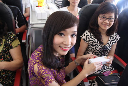 ในการบินครั้งแรกนี้ ขณะที่ผู้โดยสารบินไปยังประเทศไทยโดย VietJetAir ได้รับการต้อนรับคุณจากพนักงานในเครื่องแต่งกายสวยงามแบบไทย ๆ และรับของที่ระลึกที่น่าสนใจ