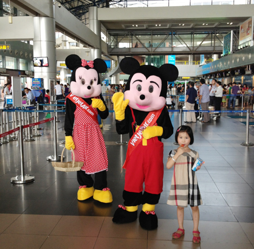 เริ่มต้นการประชุม VietJetAir เชิญคุณเป็นที่ชื่นชอบของเด็ก เช่น หนูมิกกี้เมาส์ เป็ดโดนัลด์ และหมีแพนด้า แล้วให้ของขวัญกับเด็ก และสื่อสารกับเด็กที่สนามบินระหว่างประเทศ เต็นเชินเล็ด (tan son nhat) โน่ยบ่าย ดานัง และนาตรัง