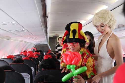 ในการเปิดเที่ยวบิน VietJetAir ได้นำมาซึ่งความสุขให้กับผู้โดยสารที่มีส่วนร่วมในคณะละครตลกบนเที่ยวบิน ศิลปินพื้นเมืองแงอาน มีการแสดงศิลปะฟองอากาศที่สร้างสรรค์ พร้อมของขวัญสำหรับผู้โดยสาร ฉากแสดงฟองอากาศบนเครื่องบินนำมาให้ผู้โดยสารความตื่นเต้น ประหลาดใจ ก่อนที่ยินดีต้อนรับกับเหตุการณ์นี้ VietJetAir นำไปยังเมือง วิญ(Vinh) หนึ่งคืนเต้นร่ำสั่นสะเทือนพร้อมกับการเต้น Gamnam style ของหลายร้อยคนหนุ่มสาว แงอานและ Marylin Monroe Ngoc Quyen เข้าร่วม.