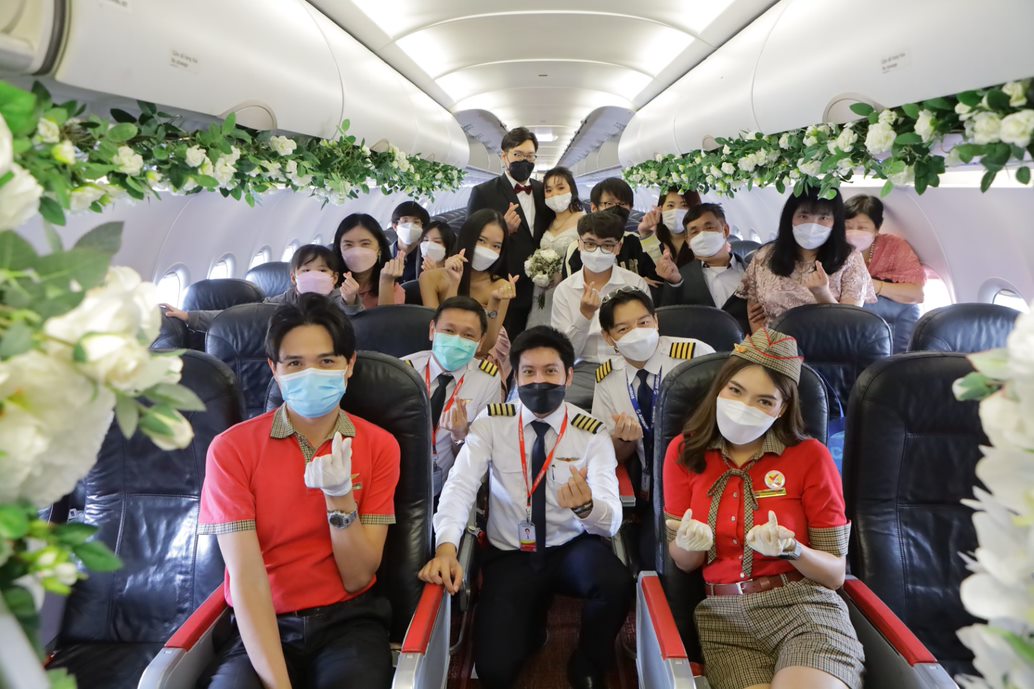 กรุงเทพฯ, 15 กุมภาพันธ์ 2565 – สายการบินไทยเวียตเจ็ทฉลองเทศกาลวาเลนไทน์ จัดพิธีวิวาห์ลอยฟ้าสุดโรแมนติก บนเที่ยวบินที่ VZ346 จาก ท่าอากาศยานสุวรรณภูมิ กรุงเทพฯ สู่ ท่าอากาศยานนานาชาติกระบี่