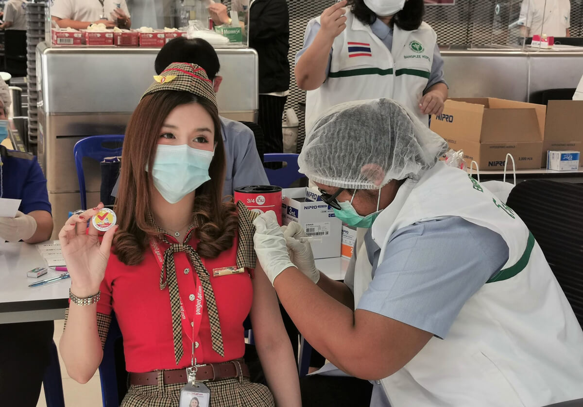 (กรุงเทพฯ – 8 มิถุนายน 2564) – สายการบินไทยเวียดเจ็ทยกระดับมาตรฐานความปลอดภัยการให้บริการ ดำเนินการฉีดวัคซีนป้องกันโควิด-19 ให้กับเจ้าหน้าที่สายการบินทั้งหมด โดยเฉพาะพนักงานด่านหน้า ณ รอยัล พารากอน ฮอลล์ สยามพารากอน และ บริเวณชั้น 4 อาคารผู้โดยสาร ท่าอากาศยานสุวรรณภูมิ เพื่อเสริมสร้างความมั่นใจต่อสุขภาพและความปลอดภัยสูงสุดของผู้โดยสารและพนักงานทุกคน
