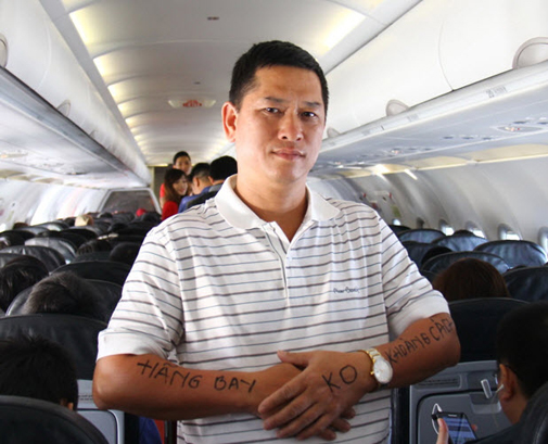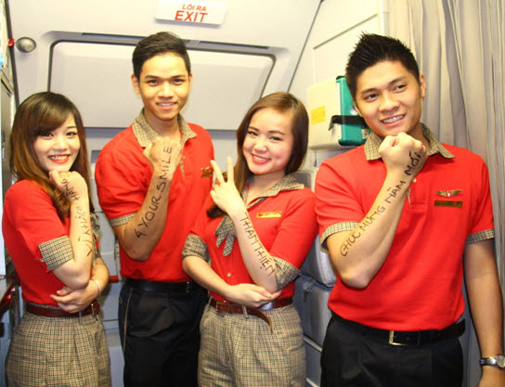 “สายการบินที่เชื่อมทุกระยะทาง” คือคำพูดที่ชายคนนี้เขียนบนแขนของเค้าสิ่งนี้คือคำชมเชยให้กับเวียดเจ็ทแอร์ที่ได้เชื่อมให้ทุกคนใกล้กันมากขึ้น