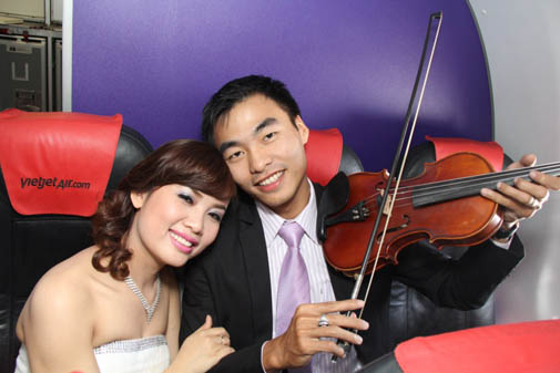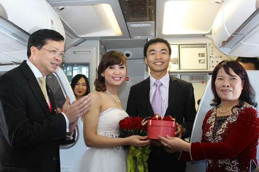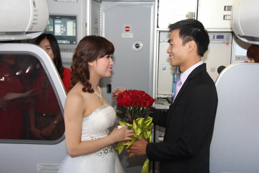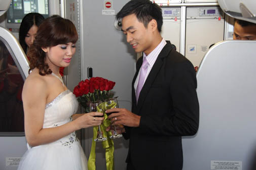 ความสุขที่อศจรรย์มาเมื่อได้พร้อมกับเนื้อคู่ของเรานัดหมายบนท้องฟ้ากว้างใหญ่ การแต่งงานบนเครื่องบินของเจ้วบ่าว....และเจ้วสาว.....ได้ทำให้วัยรุ่นเวียดนามมีรูปแบบใหม่ ความคิดสร้างสรรค์ พิเศษสุดๆและแสนโรเมนติก พวกเขาก็ได้ย่อมรับว่าเป็นการแต่งงานในเวียดนามที่ได้จัดบนเครื่องบิน