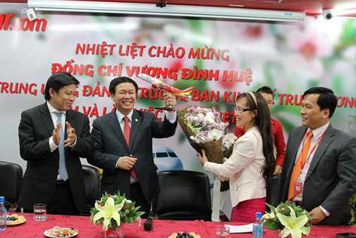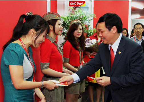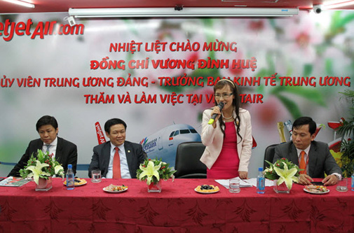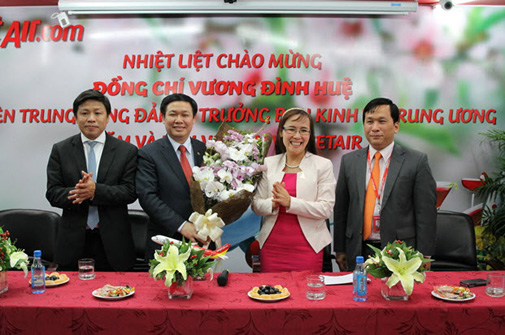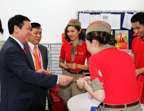 ณ วันที่ 6 กุมภาพันธ์ 2557 ( 7 มกราคม 2557 ปีจันทรคติ), ทาง VietJetAir เป็นเกียรติอย่างมากที่ได้ต้อนรับ H.E. Vuong Dinh Hue -สมาชิกของคณะกรรมการกลางของพรรคคอมมิวนิสต์เวียดนาม, หัวหน้าของคณะกรรมการกลางพรรคกรรมาธิการเศรษฐกิจ(PCC)