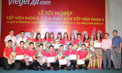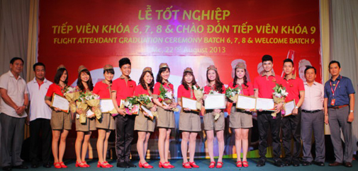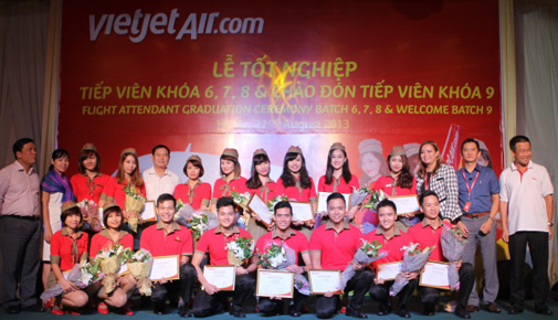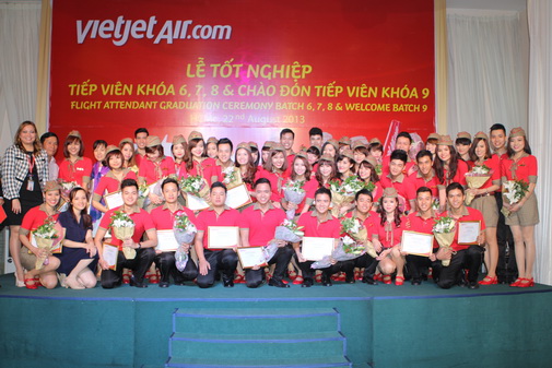 เมื่อเร็ว ๆ นี้ องค์กร VietJetAir ก็ตื่นเต้นด้วยพิธีสำเร็จการศึกษาของ 63 พนักงานต้อนรับ ล็อค 6, 7, 8 และให้การต้อนรับ 38 สมาชิกใหม่ ล็อค 9 ที่จะเข้าร่วม ในครอบครัวเวียดเจ็ทแอร์ ในการพัฒนากองเรือให้ไหญ่โตขื้น. เขามากลายเป็นทูตร่วมกันนำภาพที่มีคุณภาพ ของVietJetAir ให้ผู้โดยสาร ไปสู่ท้องฟ้าเวียดนามและภูมิภาค พิธีได้รับการให้เกียรติที่มีผู้นำ หัวหน้าหน่วยงานเข้าร่วม เพื่อเป็นกำลังใจให้ลูกเรือ