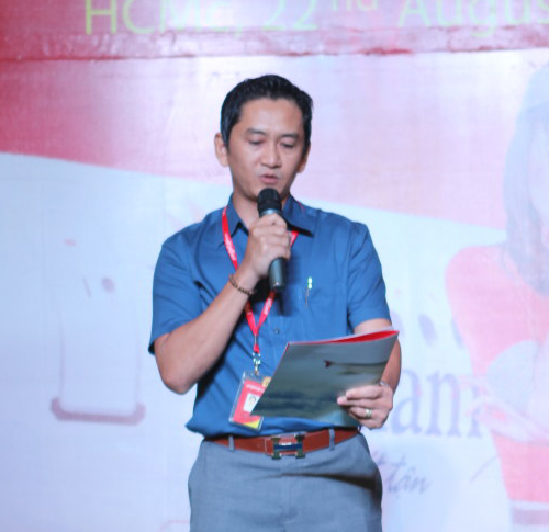 นาย เจ็่น ฮี้ว ก๊วก (TRAN HUU QUOC) รองผู้อำนวยการศูนย์ฝึกอบรม รายงานผลของการฝึกอบรมนักเรียน.