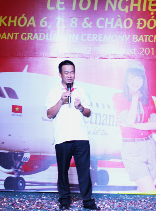 "คุณเป็นพนักงานต้อนรับที่ดีที่สุด" - นาย Duc Luu Khanh ผู้อำนวยการ VietJetAir. กล่าวปฏิคมทักทายพนักงานต้อนรับทั้งหลาย