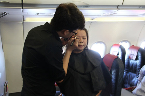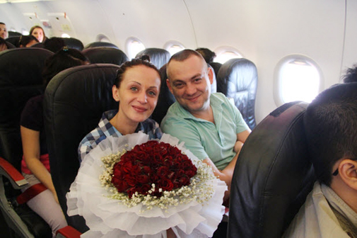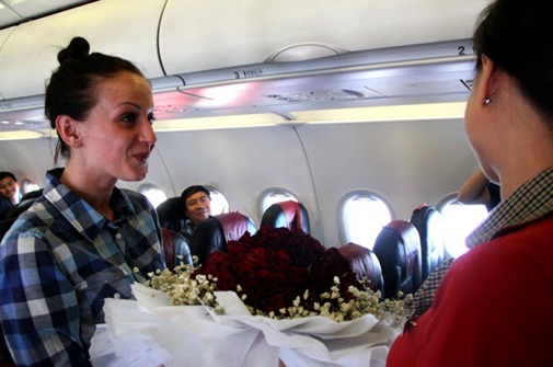 ผู้โดยสารสุภาพสตรีทุกท่าน ก็ได้รับการ์ดอวยพรจากพนักงานต้อนรับของเวียดเจ็ทแอร์