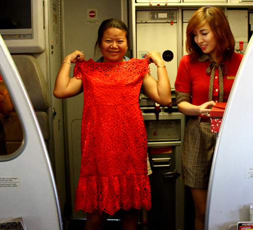 …ฉันดูเป็นอย่างไรบ้าง ฉันดีใจจนบอกไม่ถูก ไม่เคยได้รับของขวัญแสนพิเศษแบบนี้มาก่อนเลย ขอบคุณมากๆเลย เวียดเจ็ทแอร์