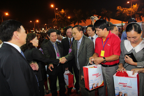 ในพิธีเปิดงานเทศกาลหมู่บ้านงานฝีมือพื้นบ้านในฮานอยและบริเวณลุ่มแม่น้ำแดงเมื่อคืนวันที่ 8 ต.ค. ที่ผ่านมา มีแขกผู้มีเกียรติมากมายจากฝ่ายรัฐบาล กระทรวงวัฒนธรรม กีฬาและการท่องเที่ยวแห่งเวียดนามและกรมวัฒนธรรม กีฬาและการท่องเที่ยวแห่งฮานอย ได้ให้เกียรติเยี่ยมชมการออกร้านของสายการบินเวียดเจ็ทแอร์ ทางสายการบินให้การต้อนรับอย่างอบอุ่นและสนุกสนานด้วยของขวัญและกิจกรรมที่สร้างสีสันให้แก่แขกคนสำคัญเหล่านี้ อาทิ สัญลักษณ์สีแดงสดใสของสายการบิน รูปภาพของเครื่องบิน A320 ชาร์คเล็ทลำใหม่ล่าสุด และกิจกรรมสะท้อนประเพณีและวัฒนธรรมของเวียดนามเหนือ เป็นต้น .