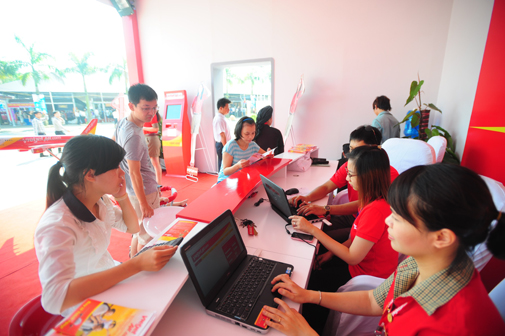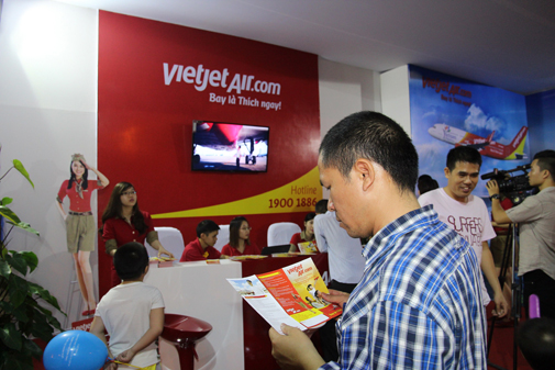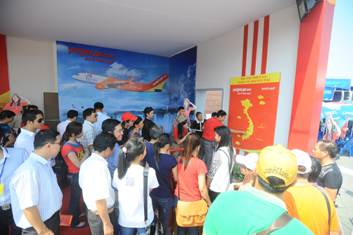มีผู้ร่วมงานมากมายให้ความสนใจเข้าร่วมชมและสอบถามเกี่ยวกับบริการและโปรโมชั่นของเวียดเจ็ทแอร์.