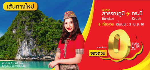 กรุงเทพฯ 2 มีนาคม 2561 – สายการบินไทยเวียตเจ็ท ประกาศเปิดเส้นทางบินใหม่ภายในประเทศไทย เชื่อมกรุงเทพฯ (สุวรรณภูมิ) – กระบี่ กำหนดเปิดให้บริการเที่ยวบินแรกในวันที่ 5 เมษายน 2561 เที่ยวบินใช้เวลาเดินทางประมาณ 1 ชั่วโมง 20 นาที ให้บริการทุกวัน วันละ 2 เที่ยว โดยออกเดินทางจากกรุงเทพฯ (สุวรรณภูมิ) เวลา 07:10 น. และ 19:25 น. และเที่ยวบินขากลับ ออกเดินทางจากกระบี่เวลา 09:05 น. และ 21:20 น.