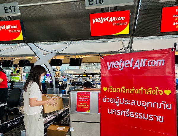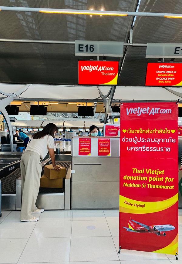 กรุงเทพฯ, 3 ธันวาคม 2563 – เนื่องจากสถานการณ์น้ำท่วมครั้งใหญ่ในจังหวัดนครศรีธรรมราชที่กำลังส่งผลกระทบต่อผู้คนจำนวนมาก ทางสายการบินไทยเวียตเจ็ทร่วมส่งกำลังใจและความช่วยเหลือ โดยการจัดตั้งจุดรับบริจาคสิ่งของจำเป็นเพื่อนำสิ่งของที่ได้รับบริจาคส่งด่วนทางอากาศไปยังผู้ประสบอุทกภัยในจังหวัดนครศรีธรรมราช