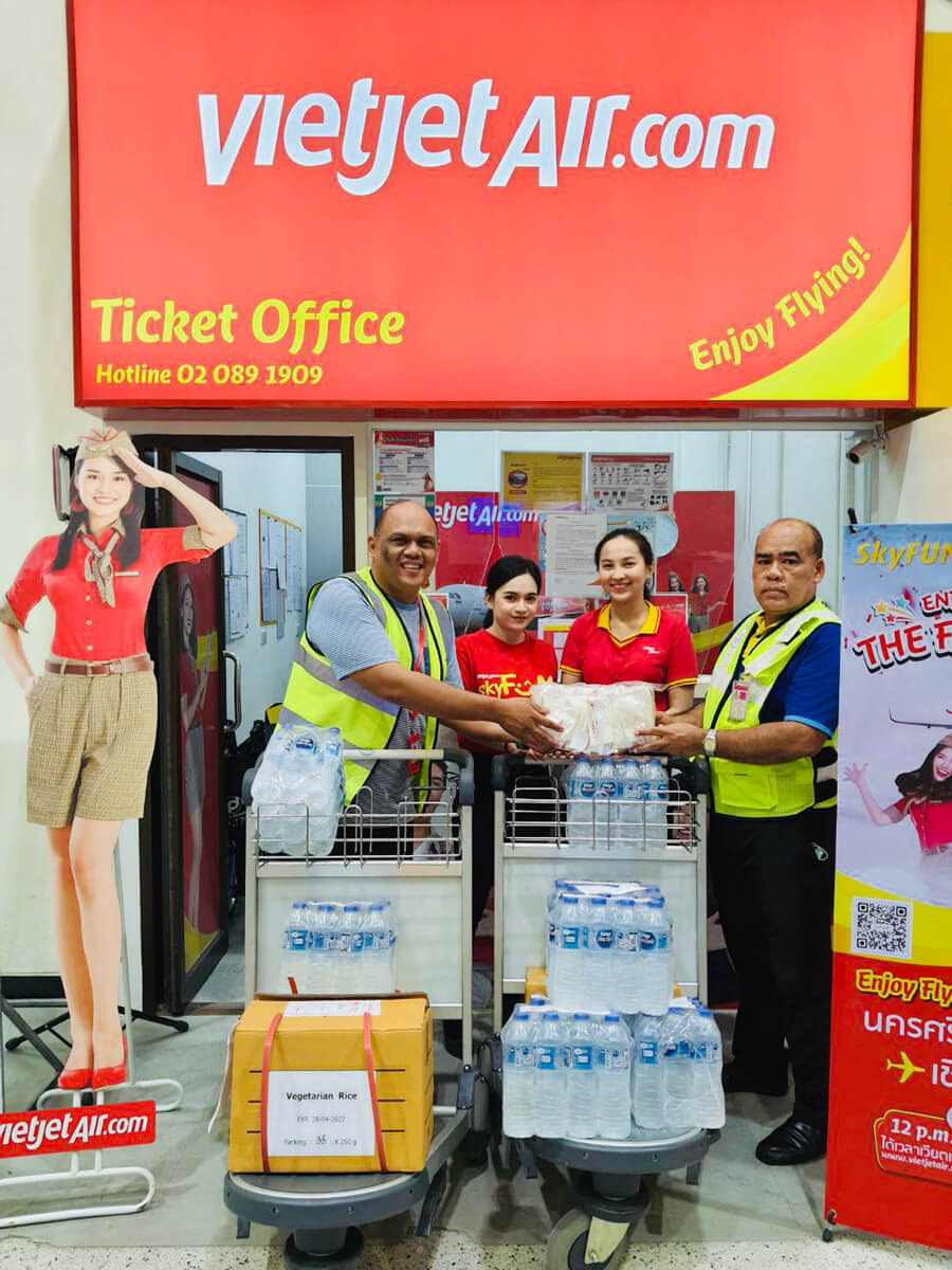สำหรับผู้ที่มีความประสงค์จะร่วมส่งสิ่งของบริจาค ยังสามารถนำสิ่งของมาส่งได้จนถึงวันที่ 7 ธันวาคม 2563 ท่าอากาศยานสุวรรณภูมิ บริเวณโถงผู้โดยสารขาออก อาคารผู้โดยสาร ชั้น 4 ประตูทางเข้าหมายเลข 3 แถว E เคาน์เตอร์เลขที่ E16 – E18 โดยสิ่งของจำเป็นที่สามารถนำมาร่วมบริจาคได้แก่ อาหารแห้ง อาหารกระป๋อง น้ำดื่มขวดขนาดประมาณ 600 มล. และของใช้จำเป็นอื่นๆ เช่น สบู่ แปรงสีฟัน ยาสีฟัน เป็นต้น