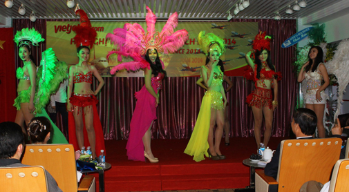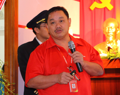 ตัวแทนจากหน่วยงานเวียดเจ็ทแอร์ได้ร่วมแบ่งปันประสบการณ์ที่สามารถทำงานให้ได้ผลงานที่ดีที่สุดรวมถึงความท้าทายต่างๆและโอกาสในการทำงานปีพ.ศ. 2557 (รูปภาพ: Mr. Nguyen Thanh Son - ผู้อำนวยการฝ่ายการค้าได้ให้ข้อคิดเกี่ยวกับการบริการที่มีคุณภาพ การจัดการส่งเสริมการขายและ การทำยอดขายให้ได้สูงกว่าเป้าการขาย)
