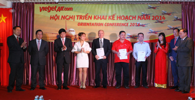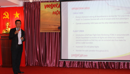 Mr. Luu Duc Khan กรรมการผู้จัดการเวียดเจ็ทแอร์ได้อ่านรายงานประจำปีพ.ศ. 2556 และแผนงานทิศทางใหม่สำหรับปีพ.ศ. 2557