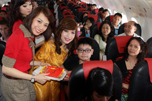 เที่ยวบินปฐมฤกษ์ ในวันปีใหม่นี้สายการบิน VietJetAir มีผู้โดยสารเต็มลำไม่เหลือที่นั่งว่าง ผู้โดยสารทุกท่านต่างก็ตื่นเต้นกับเที่ยวบินนี้ซึ่งเป็นเที่ยวบินแรกที่เดินทางออกนอกประเทศ และมีการกล่าวคำอวยพรปีใหม่ให้กันและกัน