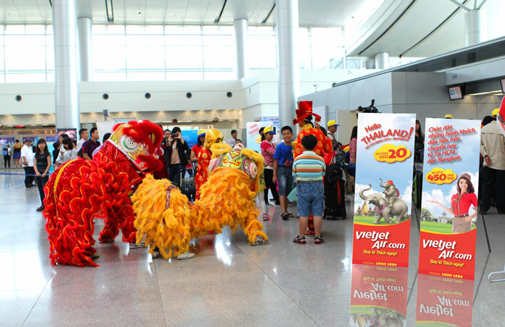 ท่ามกลางบรรยากาศฤดูใบไม้ผลิของปีใหม่ พนักงานต้อนรับของสายการบิน VietJetAir ใส่ชุดไทยเดินแจก "อั่งเปา" เพื่อส่งโชคลาภตั้งแต่ต้นปี และให้บริการไวน์ให้กับผู้โดยสารทุกท่าน ผู้โดยสารทั้งหมดได้ร่วมร้องเพลงสวัสดีปีใหม่ และเพลงพื้นบ้าน ตลอดเที่ยวบินระหว่างประเทศเที่ยวแรกของ VietJetAir แสดงให้เห็นถึงความผูกพันระหว่างชาวเวียดนาม ชาวไทย และชาวต่างชาติทั่วโลก