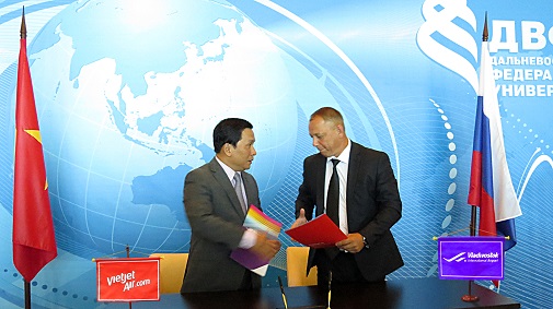 (กรุงเทพฯ 9 กันยายน 2557) – บริษัท เวียดเจ็ท เอวิเอชั่น จอยท์สต็อค และสนามบินนานาชาติ วลาดิวอสต็อก ทางตะวันออกของรัสเซีย ร่วมลงนามในบันทึกความเข้าใจหรือเอ็มโอยู (Memorandum of Understanding - MOU) เพื่อปูทางให้สายการบินยุคใหม่เปิดเส้นทางบินจากเวียดนามสู่วลาดิวอสต็อก