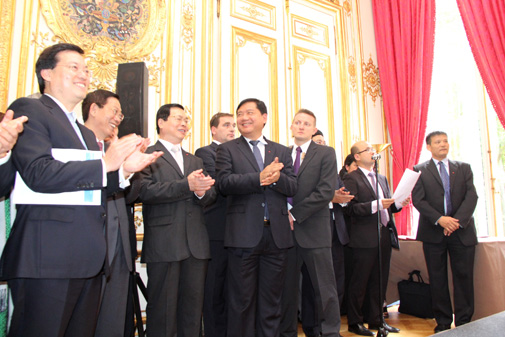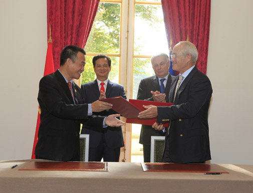 สักขีพยานสำคัญในการลงนามครั้งนี้ นาย Nguyen Tan Dung นายกรัฐมนตรีแห่งสาธารณรัฐสังคมนิยมเวียดนาม และนาย Jean-Marc Ayrault นายกรัฐมนตรีแห่งสาธารณรัฐฝรั่งเศส