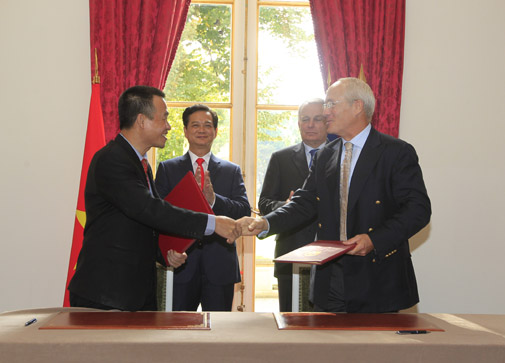 พิธีการลงนามจัดขึ้นอย่างเป็นทางการที่ปราสาท Montingonพร้อมด้วยสักขีพยานทรงเกียรติเช่น นาย Jean-Marc Ayraultนายกรัฐมนตรีแห่งสาธารณรัฐฝรั่งเศส และนาย Nguyen Tan Dung นายกรัฐมนตรีแห่งสาธารณรัฐสังคมนิยมเวียดนาม สัญญาข้อตกลงร่วมกันครั้งนี้แสดงถึงความสัมพันธ์แห่งความร่วมมืออันดีระหว่างเวียดนามและฝรั่งเศสในระหว่างการเดินทางมาเยือนฝรั่งเศสเพื่อเชื่อมสัมพันธไมตรีของนายกรัฐมนตรีแห่งเวียดนาม ในวาระที่ทั้งสองประเทศได้ร่วมเฉลิมฉลองความสัมพันธ์ทางการฑูตอันยาวนานถึง 40 ปี