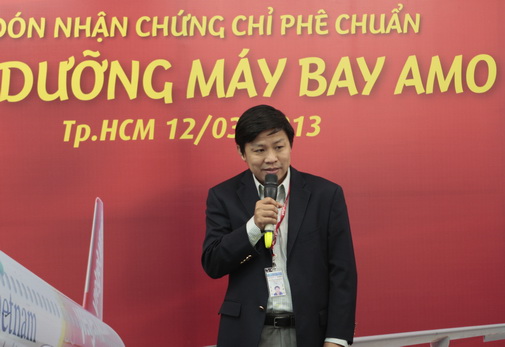 นาย ลาย ซวน แทง ผู้อำนวยการกรมการบินพลเรือนเวียดนาม มอบหนังสือรับรององค์กรบำรุงรับษาเครื่องบินให้แก่ นาย ลิว ดื๊ก แค้ง ผู้อำนาวยกรรมการการบริหาร และกลุ่มผู้บริหารเวียดเจ็ทแอร์.