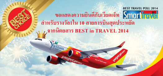 เมืองโฮจิมินห์ 23 ตุลาคม 2557- ได้มีการประกาศในวันนี้จากผู้อ่านจากนิตยสาร Smart Travel Asia ได้ทำการลงคะแนนให้สายการบินเวียดเจ็ทแอร์ เป็นสายการบินราคาประหยัดที่ดีที่สุดลำดับเก้าในทวีปเอเชีย เวียดเจ็ทแอร์เป็นหนึ่งในบริษัทชั้นนำ ท่ามกลางสายการบินที่ได้รับการยอมรับในภูมิภาคอื่นๆเช่น แอร์เอเชีย,เซบูแปซิฟิก และไทเกอร์แอร์เวย์ซึ่งทั้งสามก็อยู่ในสิบอันดับเช่นกัน