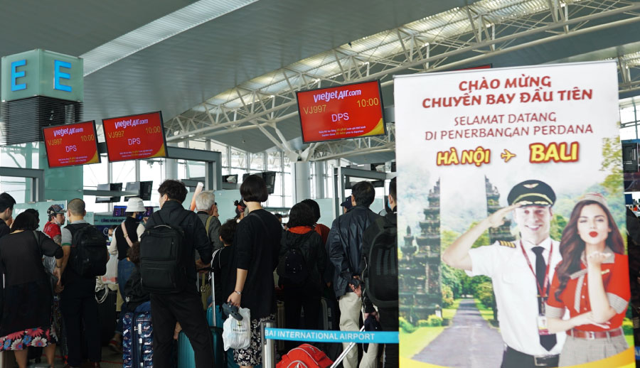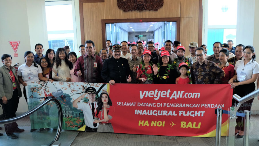 ท่าอากาศยานนานาชาติงูระห์ไร (เด็นปาซาร์) ให้การต้อนรับเที่ยวบินปฐมฤกษ์ของเวียตเจ็ท ซึ่งเป็นเส้นทางเชื่อมฮานอยสู่บาหลีเป็นครั้งแรก