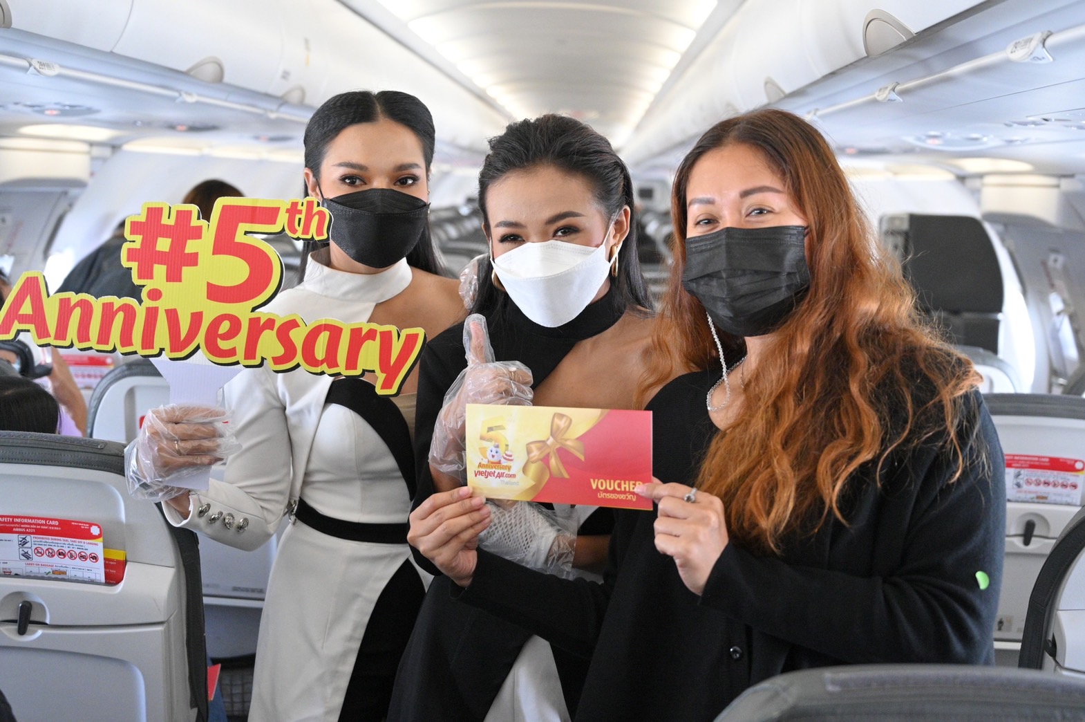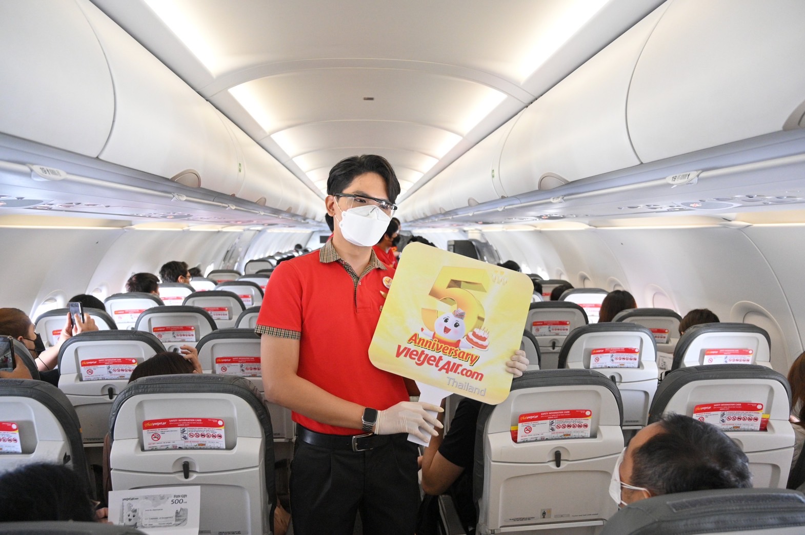 (กรุงเทพฯ – 15 กันยายน 2564) – สายการบินไทยเวียตเจ็ทจัดเที่ยวบินพิเศษฉลองโอกาสครบรอบ 5 ปี บนเที่ยวบินที่ VZ102 จากท่าอากาศยานสุวรรณภูมิ (กรุงเทพฯ) สู่ ท่าอากาศยานนานาชาติเชียงใหม่ เซอร์ไพรส์ผู้โดยสารด้วยการแสดงพิเศษจากศิลปิน “พร จันทพร” และ “เนย ภัสวรรณ” พร้อมบัตรกำนัลมูลค่า 500 บาทแก่ผู้โดยสารทุกที่นั่ง และกิจกรรมจับสลากลุ้นบัตรกำนัลบัตรโดยสารไป-กลับ ภายในประเทศ 1 รางวัล รางวัลละ 2 ที่นั่ง