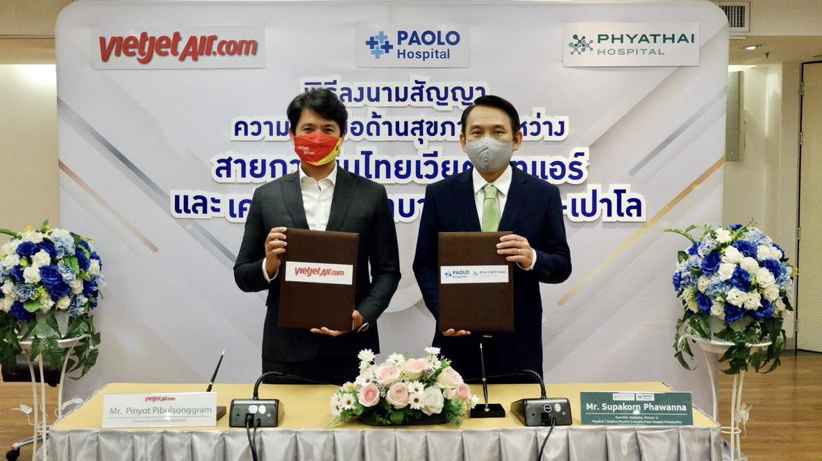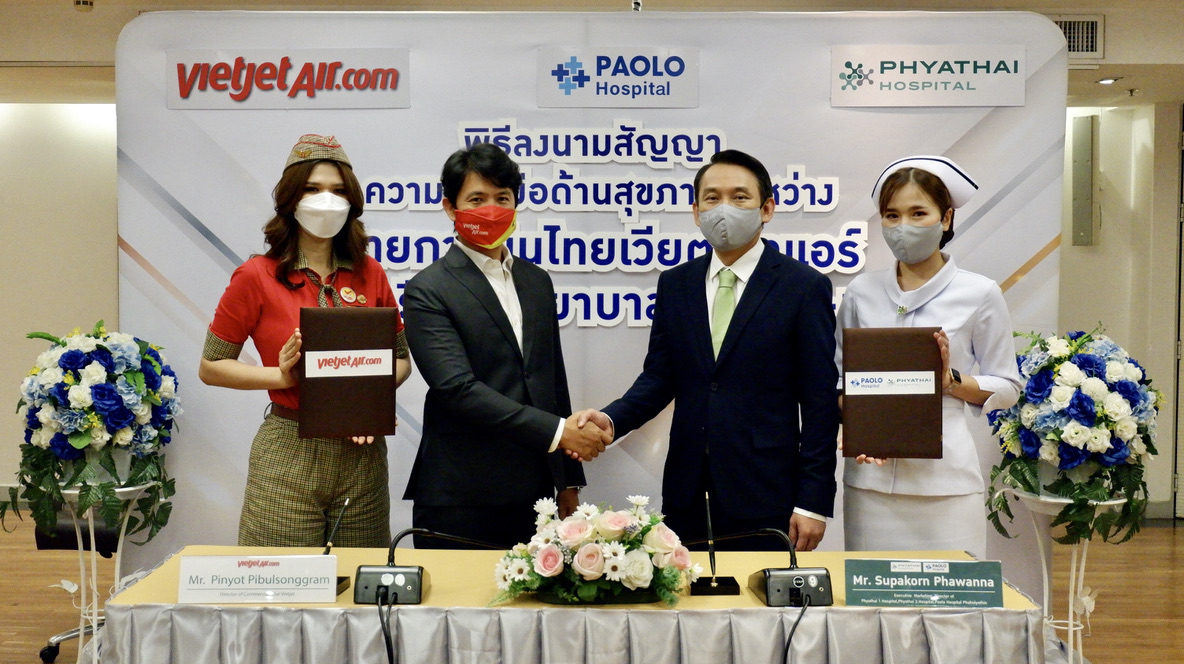 (กรุงเทพฯ, 11 พฤษภาคม 2565) – สายการบินไทยเวียตเจ็ท โดย นายปิ่นยศ พิบูลสงคราม ผู้อำนวยการฝ่ายการพาณิชย์ สายการบินไทยเวียตเจ็ท ร่วมกับโรงพยาบาลพญาไท โดย นายศุภกร พะวันนา ผู้อำนวยฝ่ายบริหารการตลาดโรงพยาบาลพญาไท 1 โรงพยาบาลพญาไท 2 และโรงพยาบาลเปาโล พหลโยธิน ลงนามสัญญาความร่วมมือด้านสุขภาพ เปิดตัวแพ็คเกจตรวจสุขภาพ ณ โรงพยาบาลพญาไท พร้อมบัตรโดยสารเที่ยวบิน ไป – กลับ สู่ กรุงเทพฯ (สุวรรณภูมิ) ของไทยเวียตเจ็ท พร้อมข้อเสนอพิเศษ ซื้อ 1 แถม 1 ส่งเสริมการท่องเที่ยวทางการแพทย์แก่นักท่องเที่ยวในภูมิภาคอาเซียน