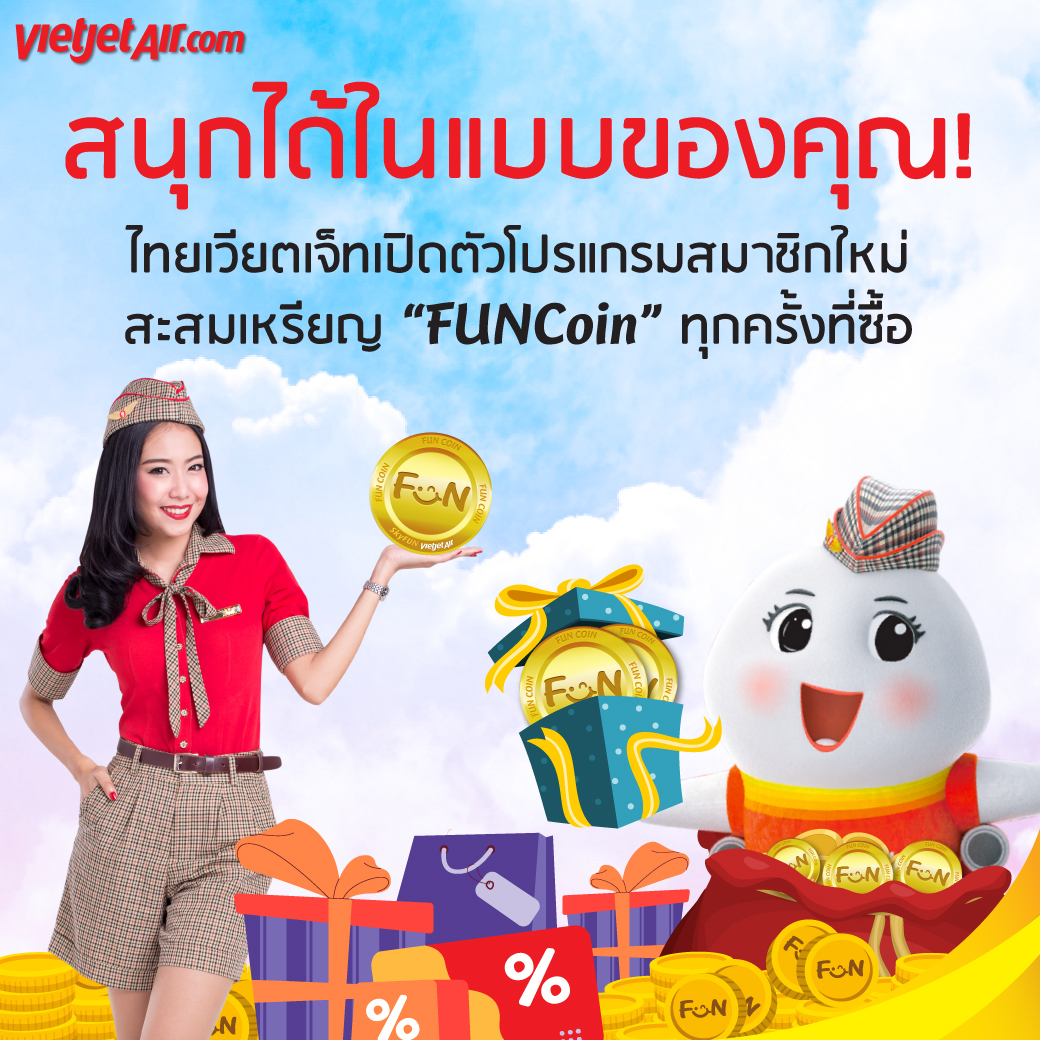 (กรุงเทพฯ – 20 สิงหาคม 2564) – สายการบินไทยเวียตเจ็ทเปิดตัว “สกายฟัน (SkyFUN)” โปรแกรมสมาชิกอย่างเป็นทางการของสายการบินฯ พร้อมระบบสะสมคะแนน “ฟันคอยน์ (FUN Coin)” มอบประสบการณ์ที่เหนือกว่าอีกระดับแก่ผู้โดยสาร ด้วยสิทธิประโยชน์พิเศษมากมายจากสายการบินฯ และพันธมิตรจากทั่วทั้งภูมิภาค