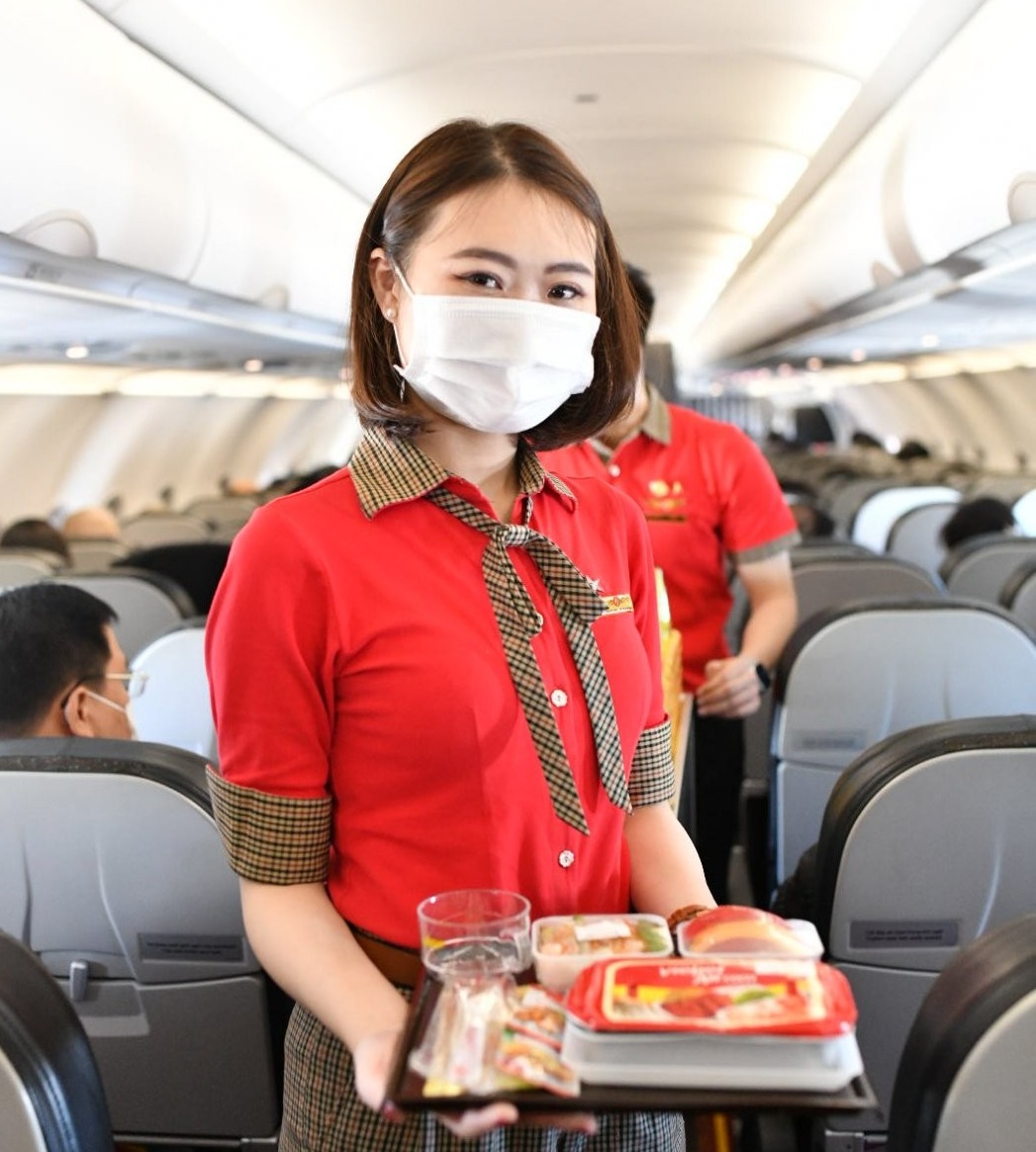 Hành khách có thể yên tâm thưởng thức những món ăn ngon miệng, phong phú với giá rẻ cùng chất lượng phục vụ chu đáo từ độ cao 10.000m cùng Vietjet