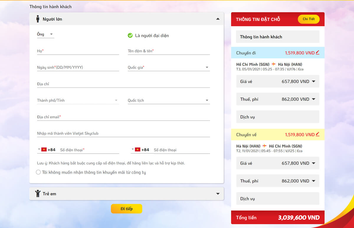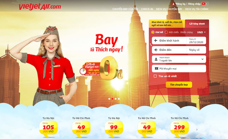 Bước 1: Truy cập trang www.vietjetair.com và tìm chuyến bay.