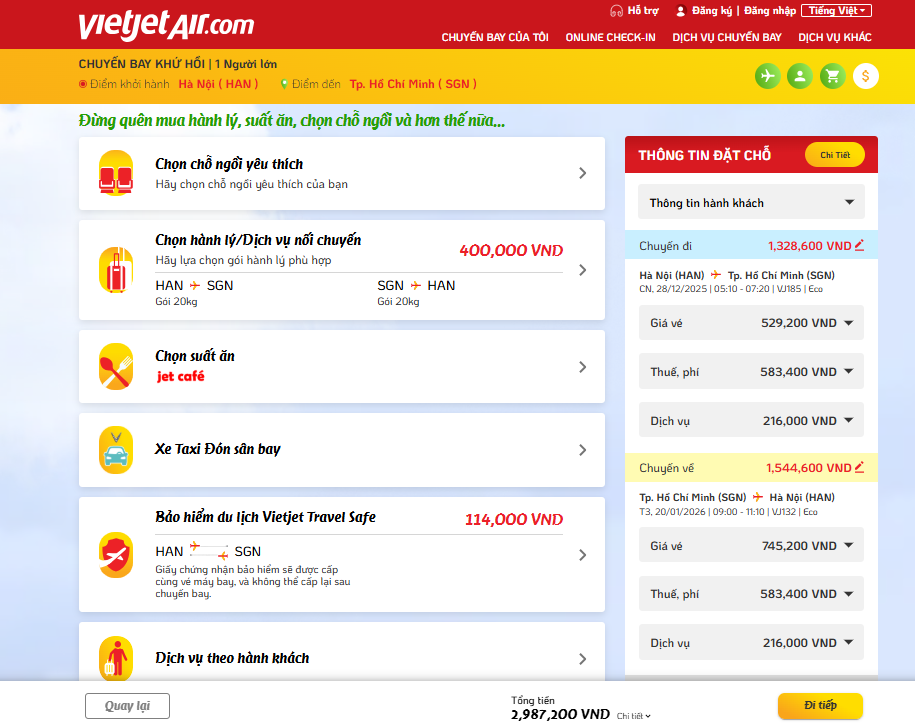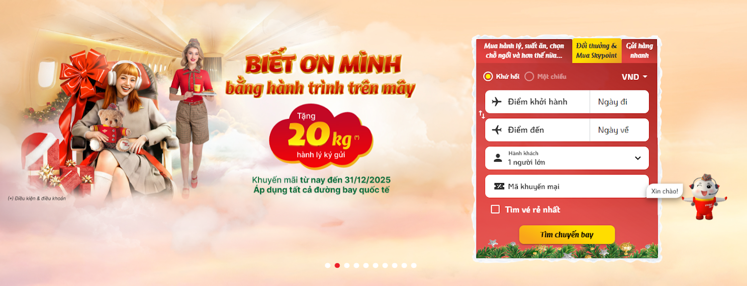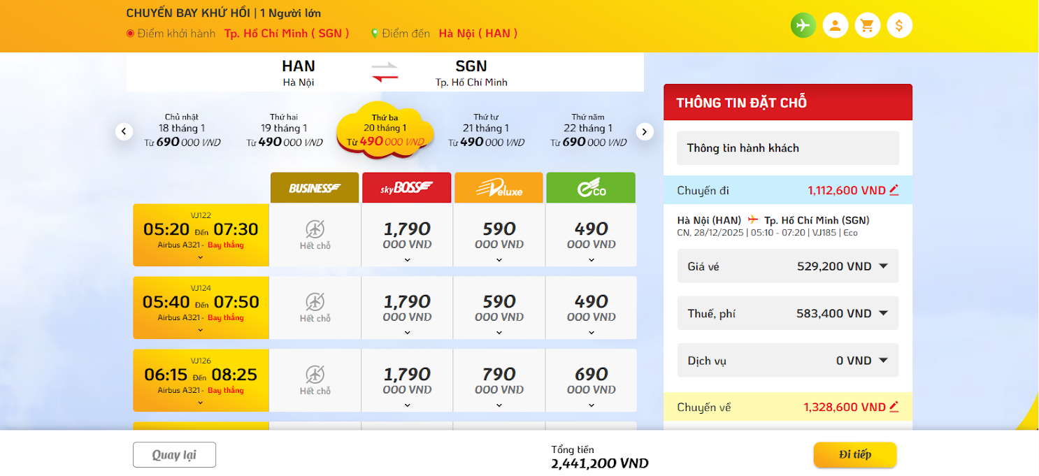 Bước 1: Đặt vé trên website Vietjet