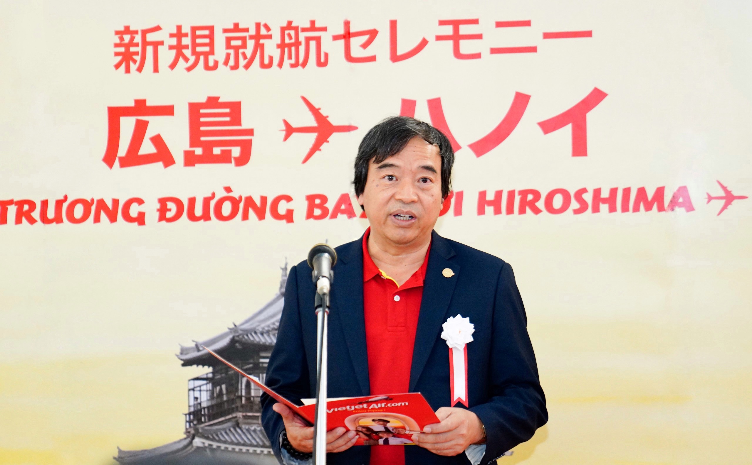 Phát biểu tại buổi lễ, Thống đốc tỉnh Hiroshima, ông Yuzaki Hidehiko chúc mừng Vietjet: “Tôi rất vui mừng khi chứng kiến đường bay Hiroshima – Hà Nội khai trương hôm nay, hiện thực hoá việc công bố đường bay nhân dịp Thủ tướng Phạm Minh Chính đến tham dự sự kiện G7 tại Hiroshima vào năm ngoái. Tỉnh Hiroshima có mối quan hệ chặt chẽ với Việt Nam với nhiều doanh nghiệp lớn mở rộng hoạt động đến Việt Nam và cộng đồng người Việt sinh sống tại tỉnh. Chúng tôi kỳ vọng đường bay mới sẽ mở ra nhiều cơ hội hợp tác, giao lưu văn hoá, kinh tế, du lịch.”