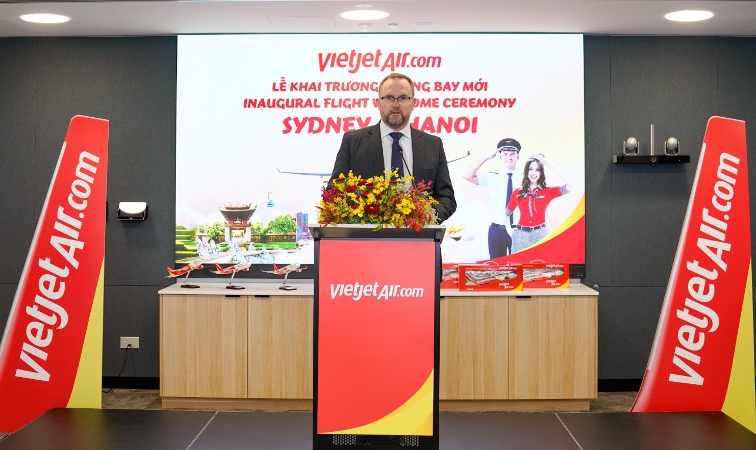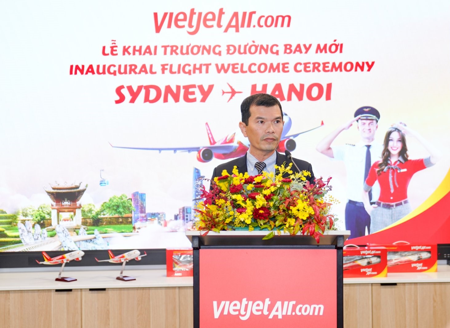 (Vietjet, Sydney, ngày 7/6/2024) - Tiếp theo đường bay Hà Nội – Melbourne vừa được khai trương ngày 3/6 vừa qua, hôm nay Vietjet tiếp tục tưng bừng khai trương đường bay kết nối Thủ đô Hà Nội, Việt Nam với thành phố cảng xinh đẹp Sydney, Australia trong sự chào đón nồng nhiệt của lãnh đạo bang New South Wales, sân bay Sydney, Bà Nguyễn Thanh Hà – Phó Chủ tịch HĐQT Vietjet; Ông Đỗ Xuân Quang – Phó Tổng giám đốc Vietjet cùng đông đảo người dân và du khách.