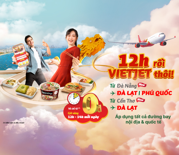 Vé bay đã được mở bán ngay hôm nay, cùng với chương trình ưu đãi hấp dẫn chỉ từ 0 đồng (*) vào 12h - 14h mỗi ngày trên website www.vietjetair.com và ứng dụng điện thoại Vietjet Air. Mùa lễ hội cuối năm này, bạn có thêm lựa chọn hành trình hấp dẫn với các điểm đến du lịch nổi tiếng khắp cả nước, “làm mới chính mình”, sẵn sàng khởi đầu một năm mới tốt lành, hứa hẹn nhiều khởi sắc may mắn nguyên năm.