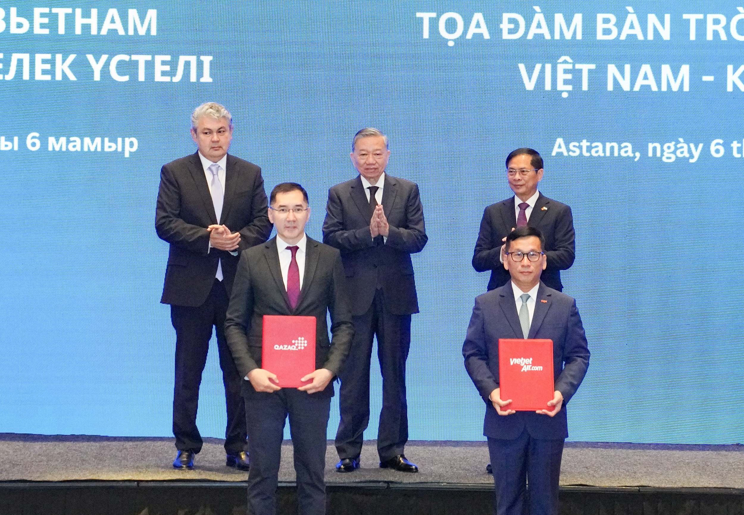 (Astana, Kazakhstan, ngày 6 tháng 5 năm 2025) – Vietjet và Qazaq Air công bố hợp tác chiến lược, chuẩn bị cho ra mắt hãng hàng không “Vietjet Qazaqstan” tại Diễn đàn Doanh nghiệp Kazakhstan – Việt Nam. Sự kiện diễn ra trang trọng với sự tham dự của Tổng Bí thư Tô Lâm trong khuôn khổ chuyến thăm cấp Nhà nước tại Cộng hòa Kazakhstan.
