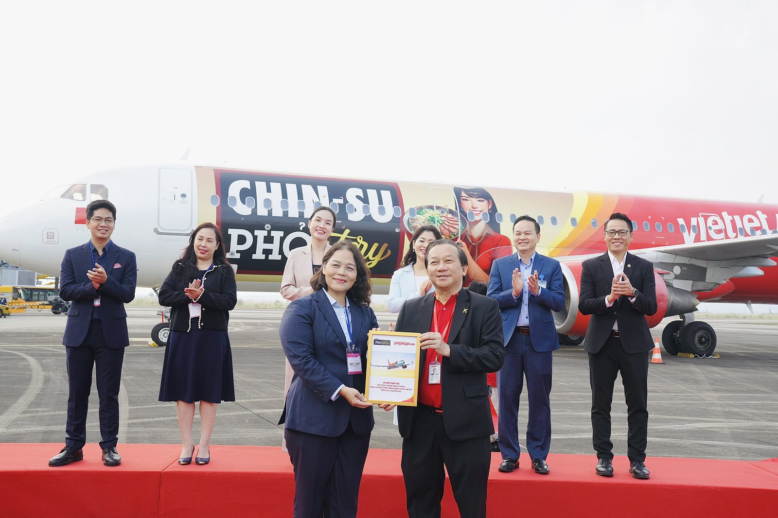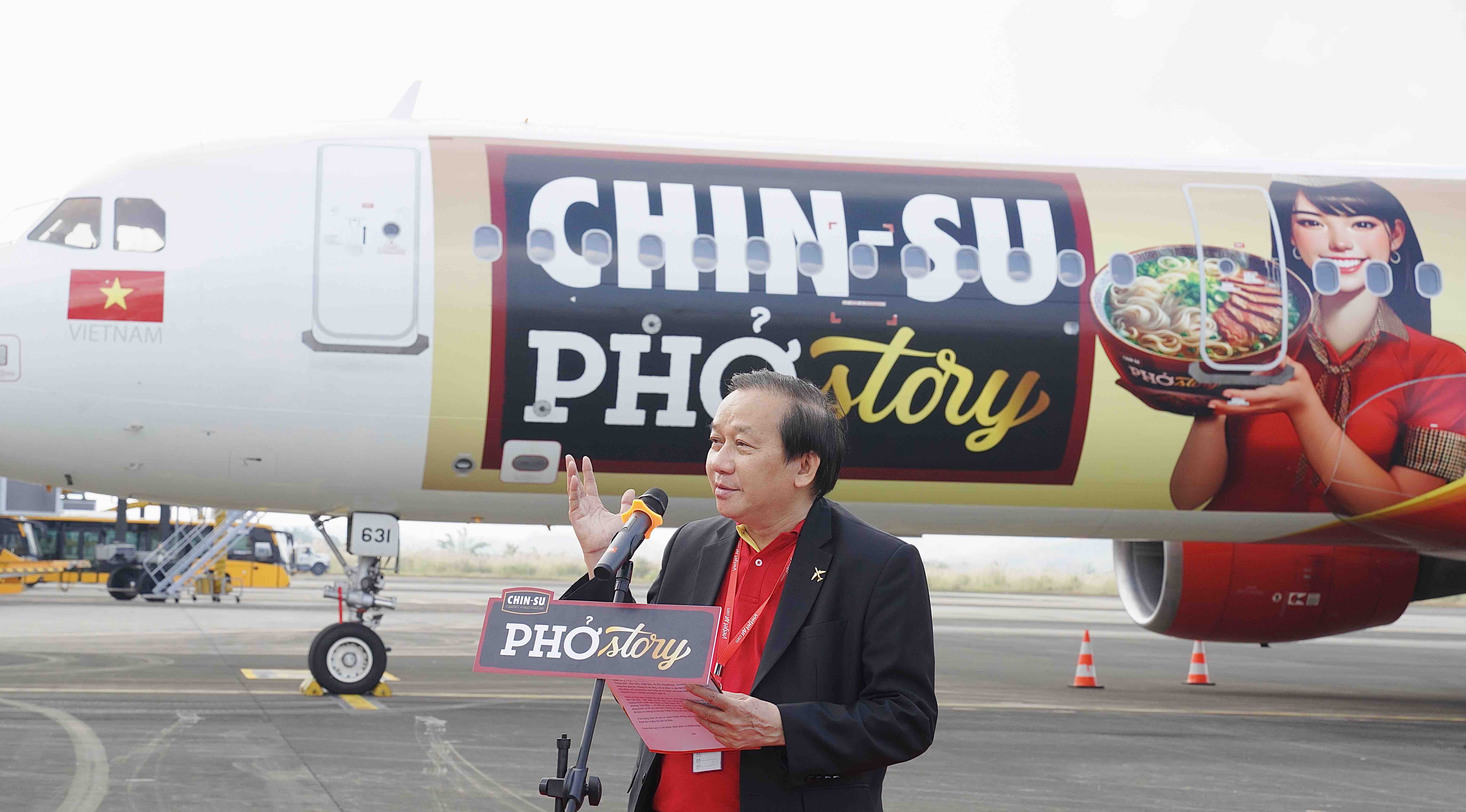 Theo đó, tàu bay thế hệ mới A321 của Vietjet với hình ảnh tiếp viên hàng không Vietjet phục vụ hành khách CHIN-SU Phở Story được chính thức ra mắt trong dịp này. Với hình ảnh trẻ trung, ấn tượng và thân thiện, tàu bay Vietjet sẽ mang hình ảnh món Phở - đặc sắc ẩm thực Việt Nam mang hương vị nước dùng chuẩn vị từ chính công thức gia truyền của quán Phở Thìn Bờ Hồ 70 năm tuổi, đến với hành khách, bạn bè quốc tế trên những chuyến bay phủ khắp Việt Nam và quốc tế tới Australia, Ấn Độ, Trung Quốc, Nhật Bản, Hàn Quốc, Kazakhstan, Indonesia, Thái Lan, Malaysia, Singapore, Lào, Campuchia…